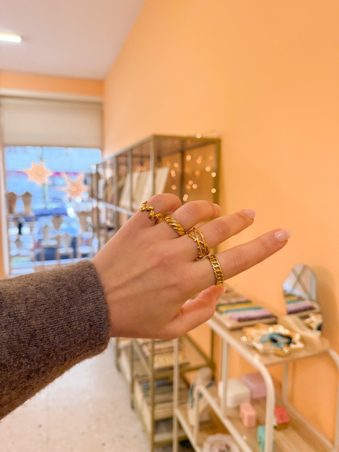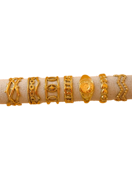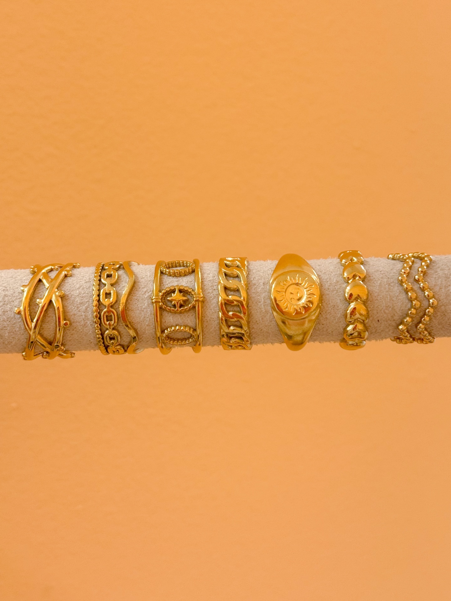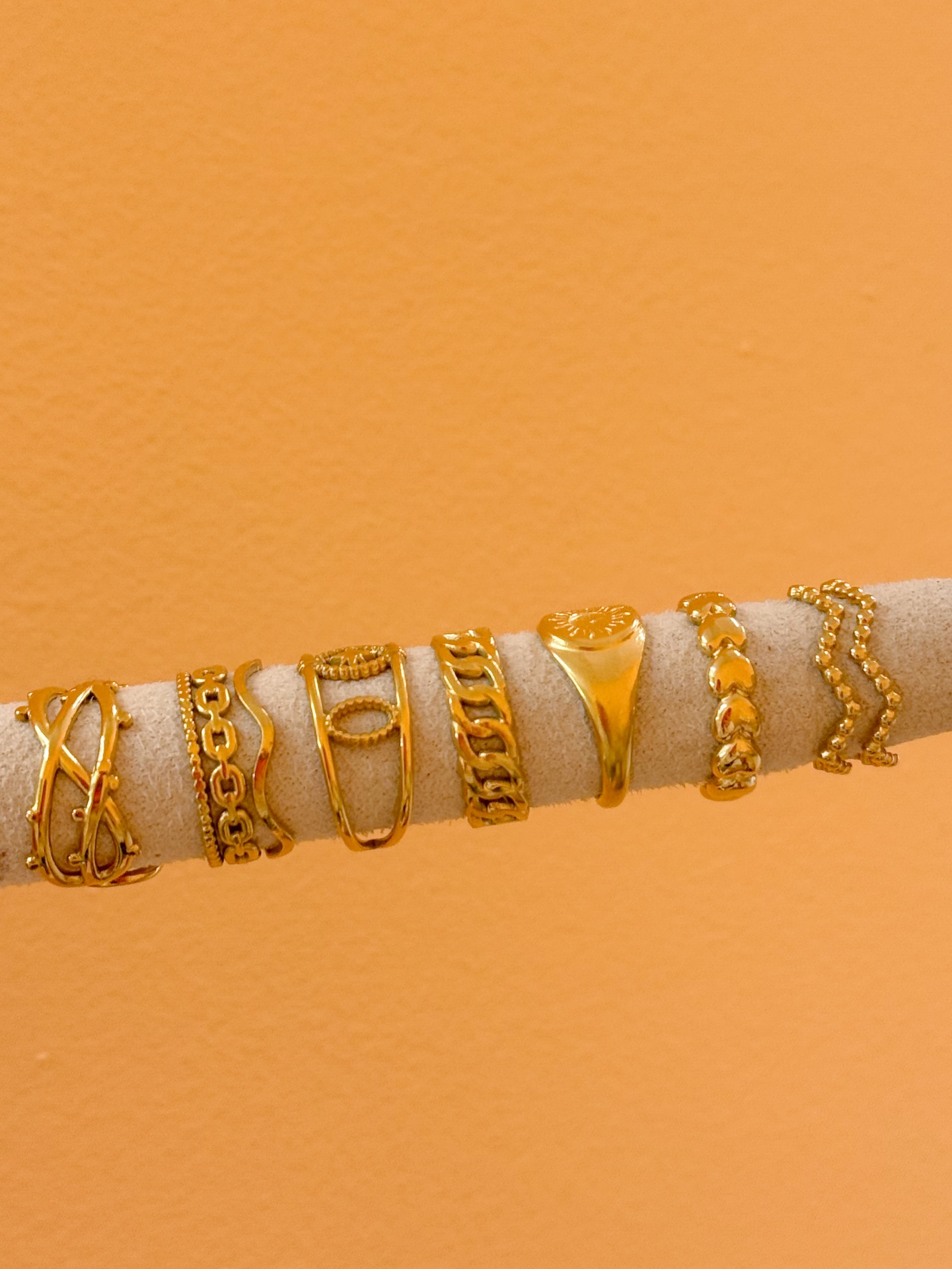 Anel Dourado Ajustável 8,00 € Desconto de %. Partilhar Modelo (esquerda-direita) Largo Cruzado Triplo Duplo Estrela Corrente Sol Corações Duplo ZigZag Comprar Contactar Material: aço inoxidável Tamanho regulável