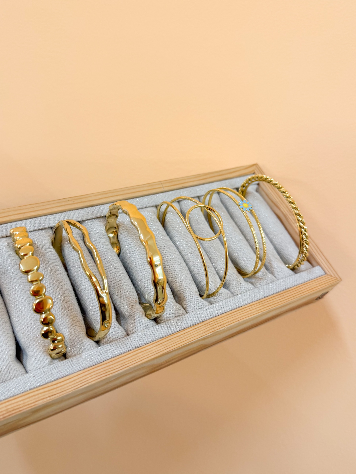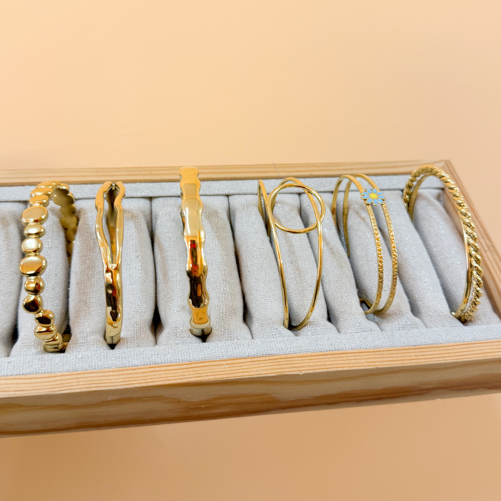 Bracelete Dourada 12,00 € Desconto de %. Partilhar Modelo (esquerda-direita) Bubbles Irregular Irregular Aberta Martelada Círculo Dupla Flor Azul Torcida em Base Reta Comprar Contactar Material: aço inoxidável