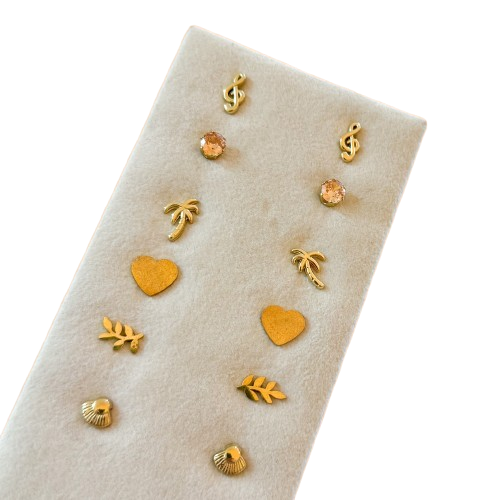 Brincos Aço Dourados 5,00 € Desconto de %. Partilhar Modelo Palmeiras Claves de Sol Ramo Folhas Corações Conchas Pontos de Luz Salmão Comprar Contactar Material: aço inoxidável Valor indicado para um par