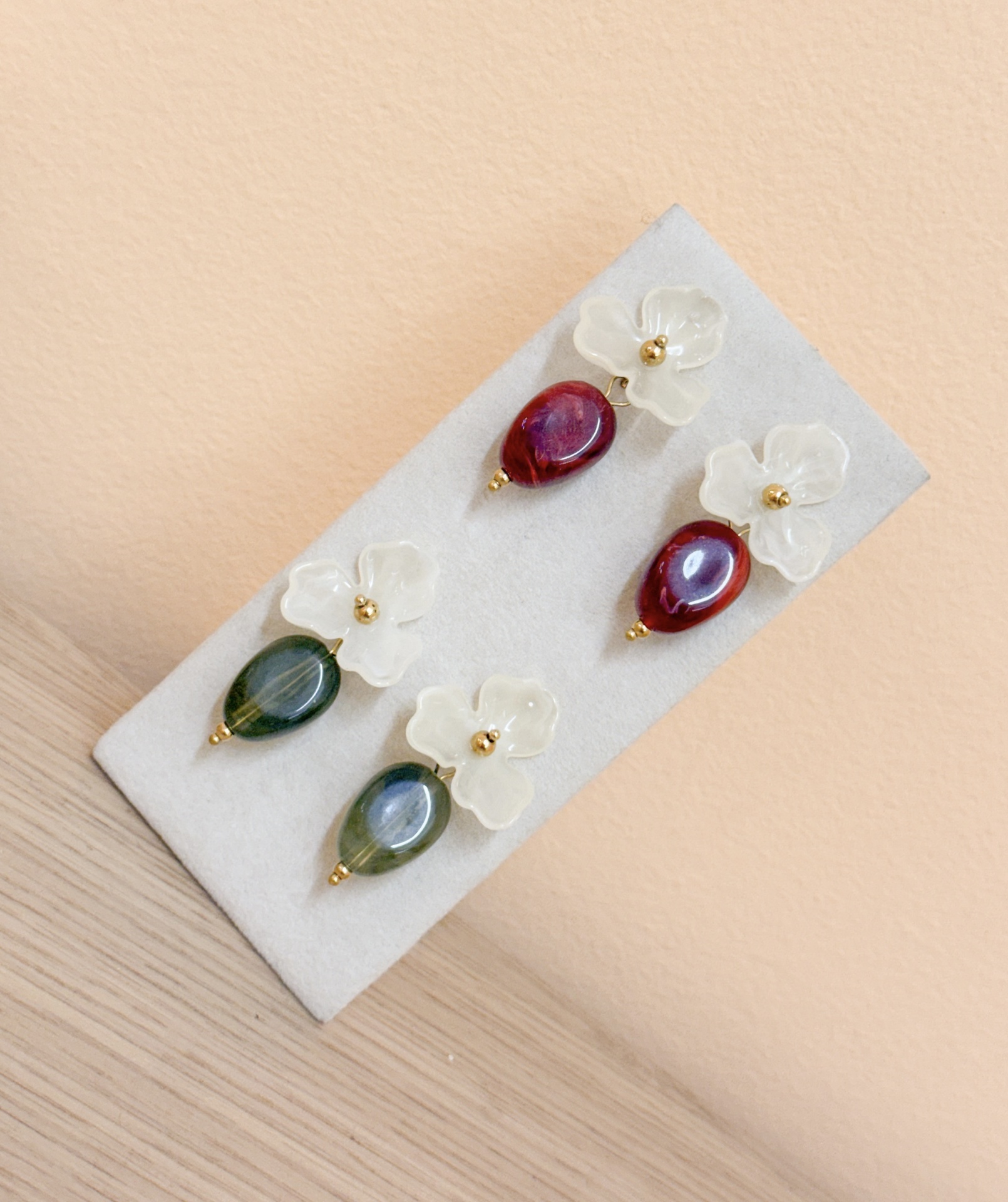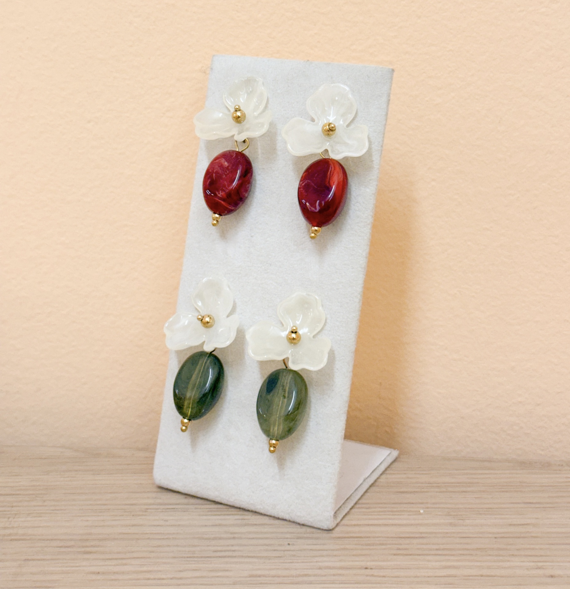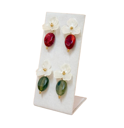 Brincos Blossom 10,00 € Desconto de %. Partilhar Cor Bordeaux Verde Comprar Contactar Material: acrílico e aço inoxidável Valor indicado para um par