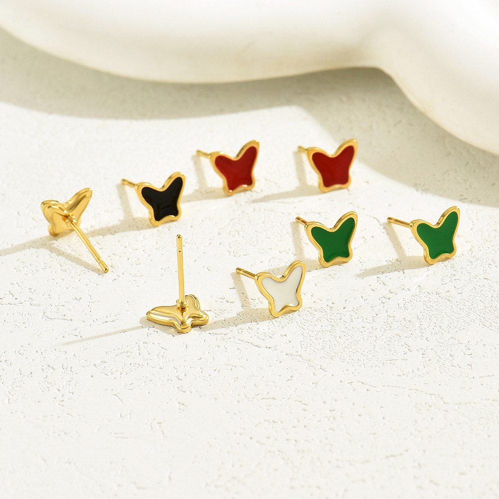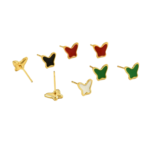 Brincos Borboleta 6,00 € Desconto de %. Partilhar Cor Verde Preto Comprar Contactar Material: aço inoxidável e esmalte Dimensão: 7mm x 8mm