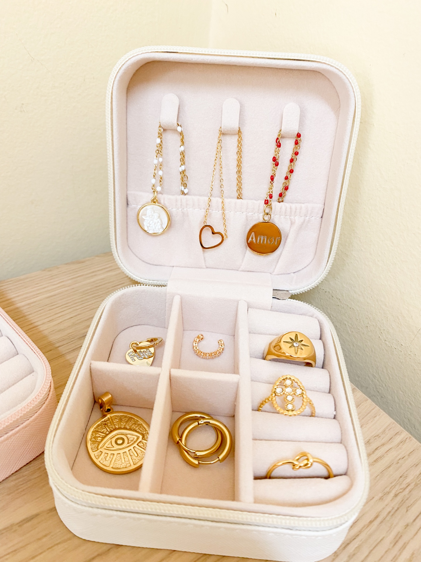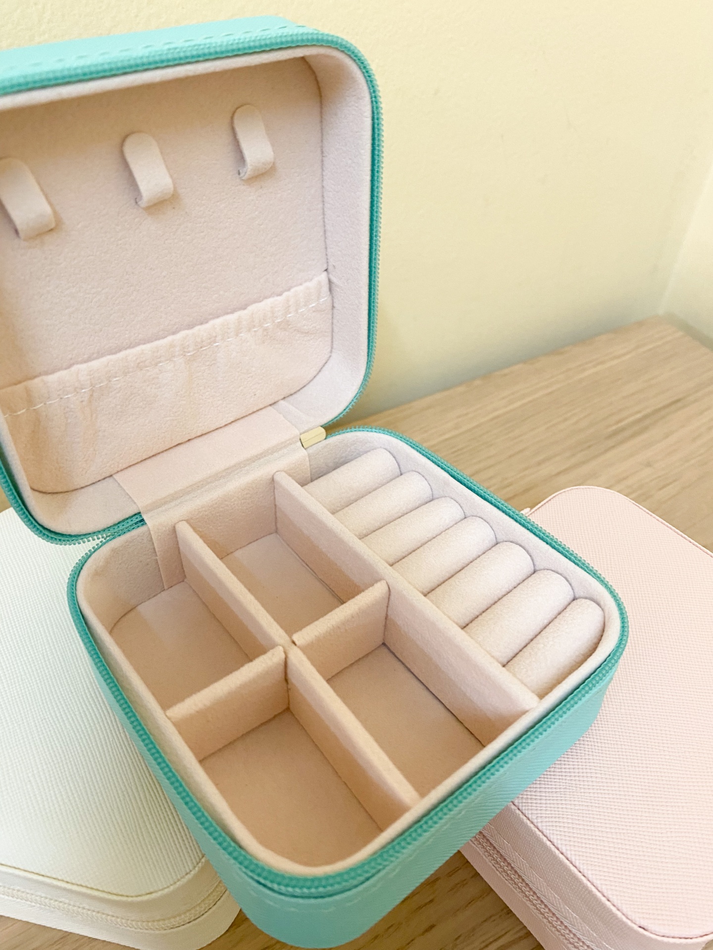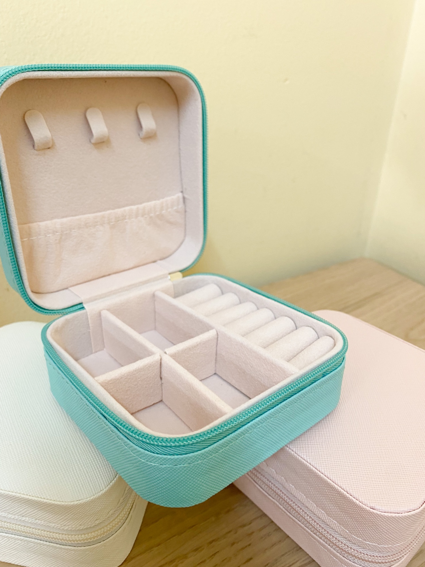 Caixinha Guarda-Jóias Pequena Quadrada 12,00 € Desconto de %. Partilhar Cor Verde Água Rosa Branco Comprar Contactar Dimensão: 10cm x 10cm x 5cm