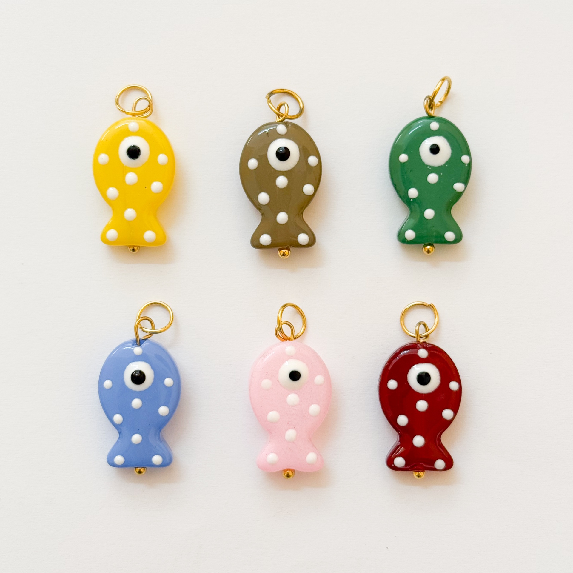 Charm Fish Dots 3,00 € Desconto de %. Partilhar Cor Amarelo Rosa Bordeaux Caqui Verde Azul Comprar Contactar Material: acrílico e aço inoxidável Altura de 27mm