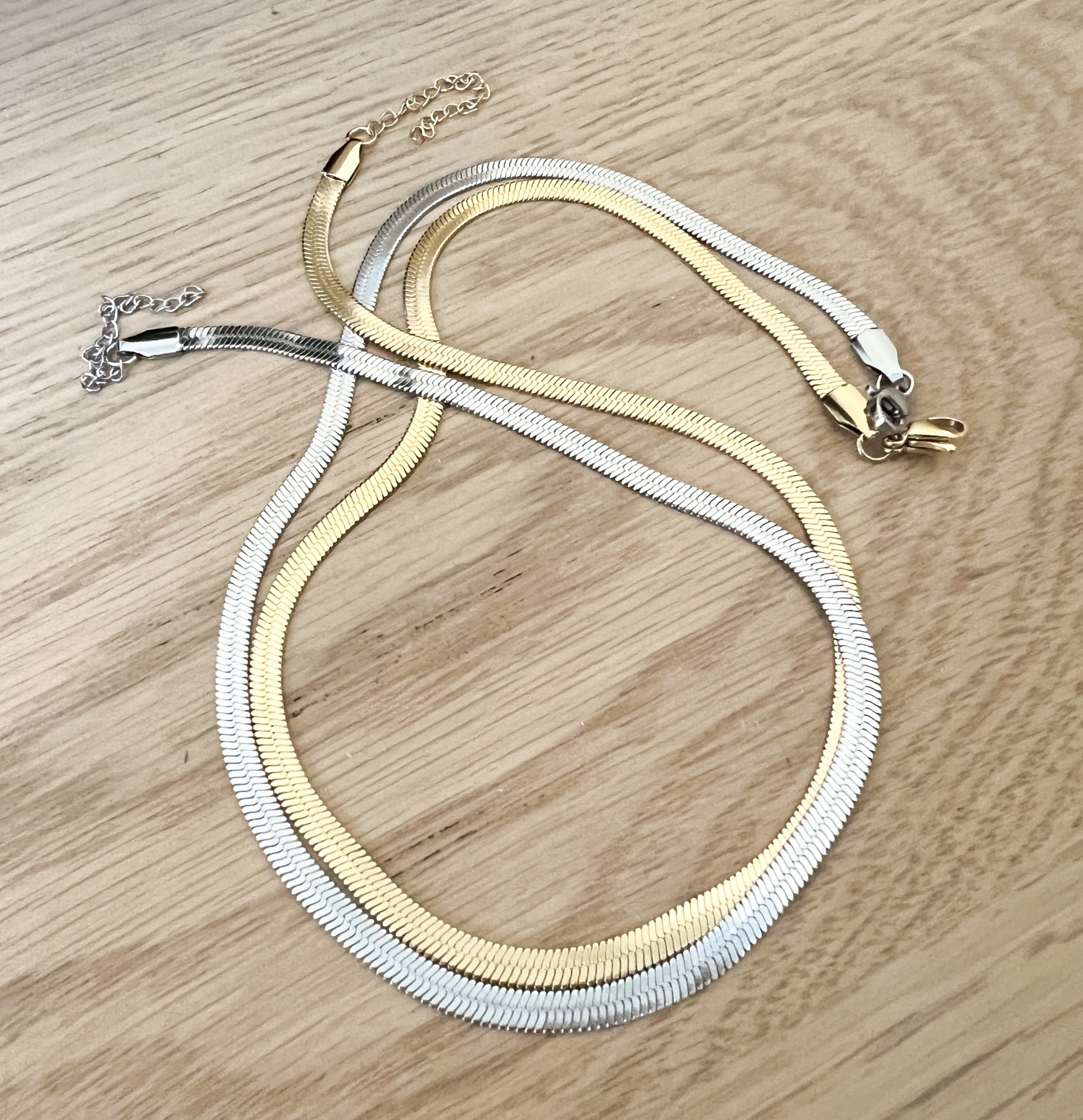 Colar Achatado 10,00 € Desconto de %. Partilhar Cor Dourado Prateado Comprar Contactar Material: aço inoxidável Comprimento ajustável entre os 45 e os 50cm. Largura de 5mm