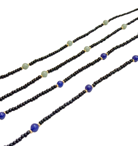 Colar AW Beads 8,00 € Desconto de %. Partilhar Cores Preto e Azul Preto e Verde Comprar Contactar Material: vidro e aço inoxidável Comprimento regulável entre os 40cm e os 45cm