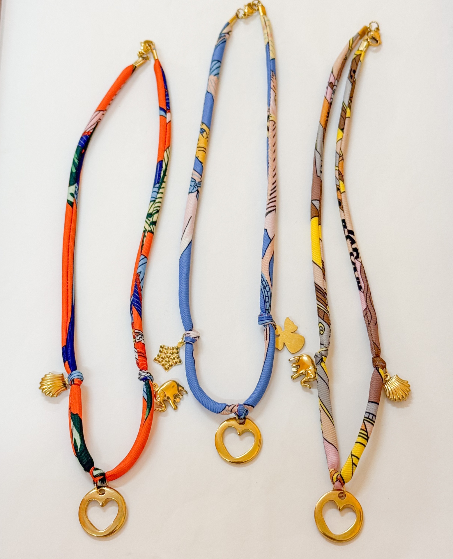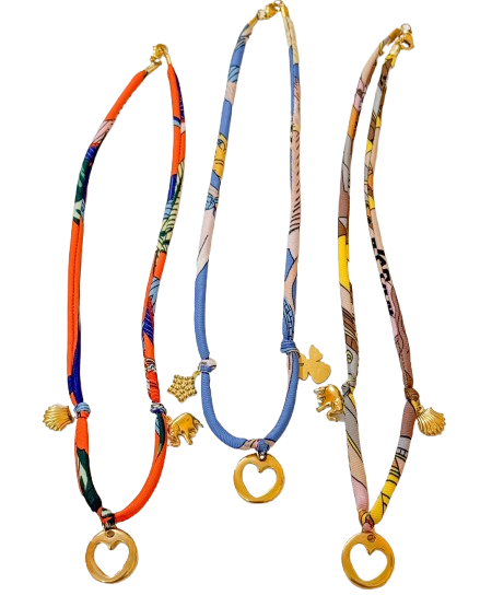 Colar Charm Party 10,00 € Desconto de %. Partilhar Cor do Tecido Laranja Azul Castanho Comprar Contactar Material: tecido, detalhes em aço inoxidável e zamak Comprimento médio de 45cm