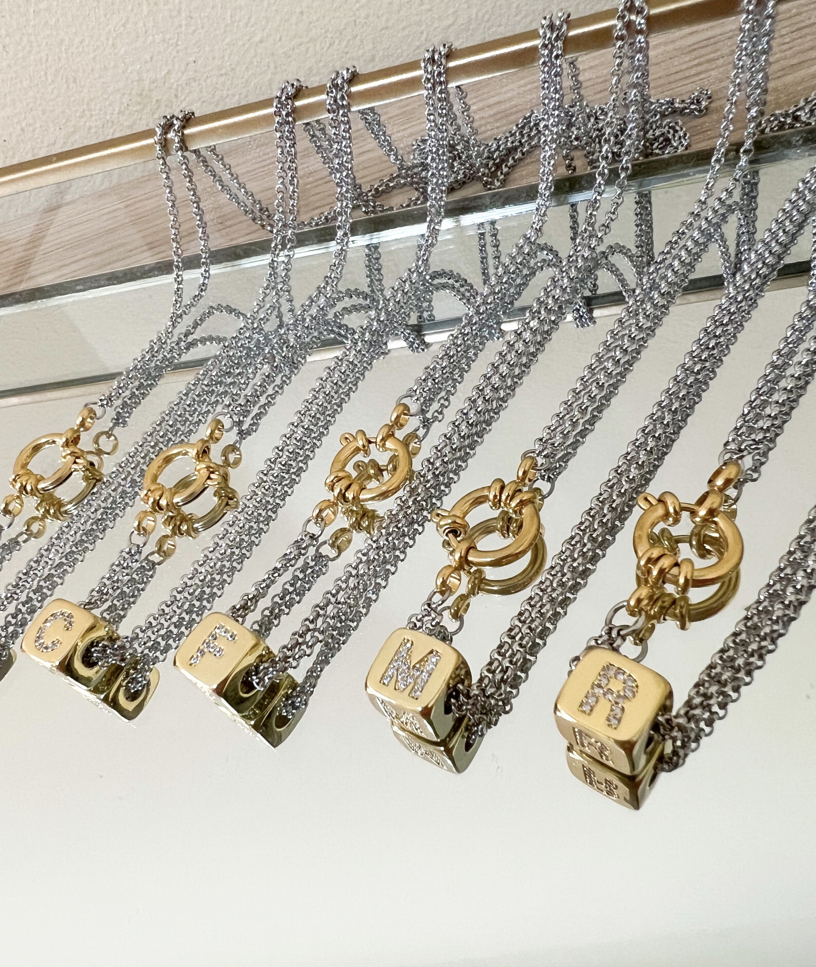 Colar Dourado e Prateado Letra Cubo 10,00 € Desconto de %. Partilhar Letra A B C D E F G H I J K L N M T P R S U X Y Z Comprar Contactar Material: aço e latão Comprimento: 43cm