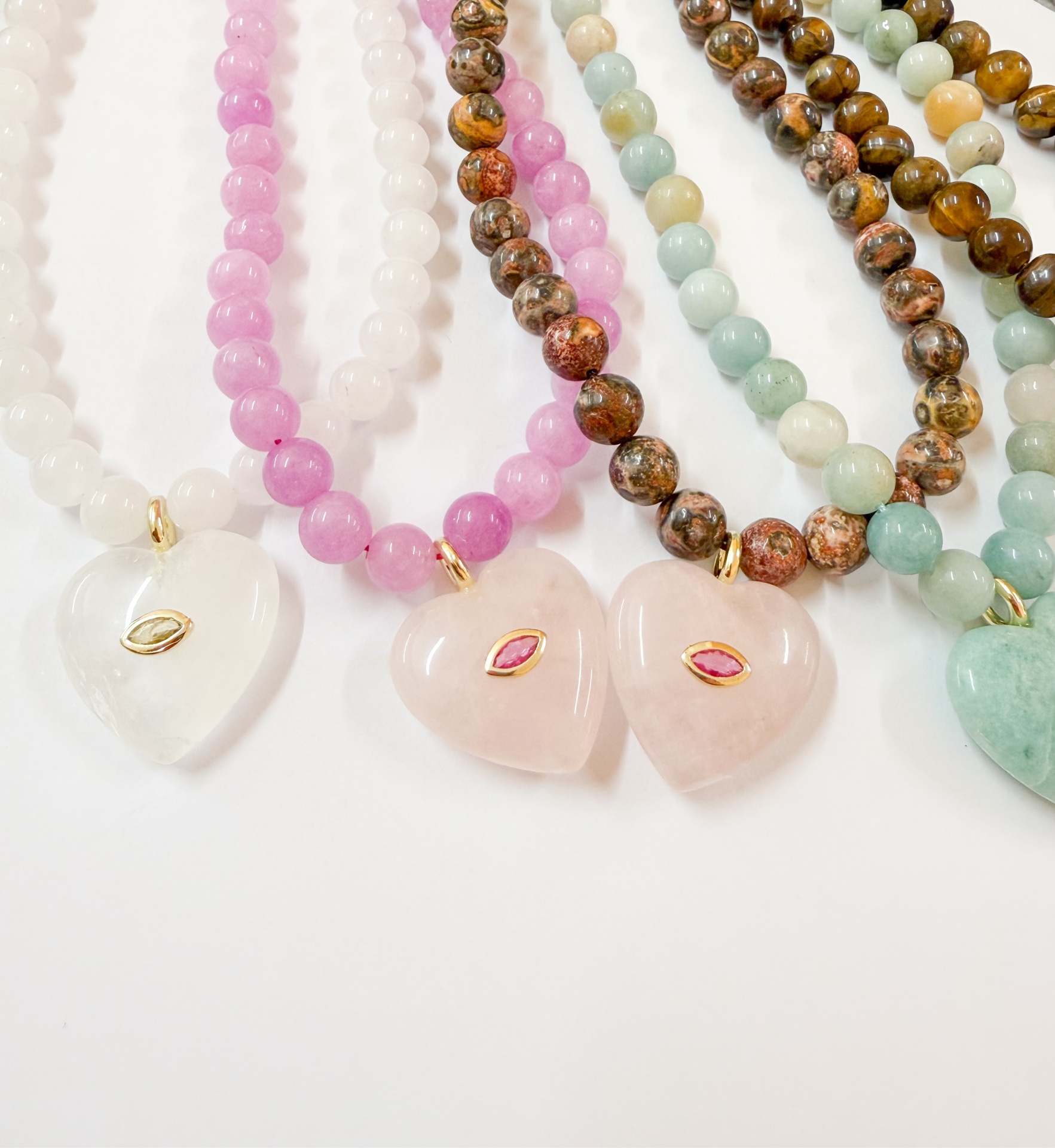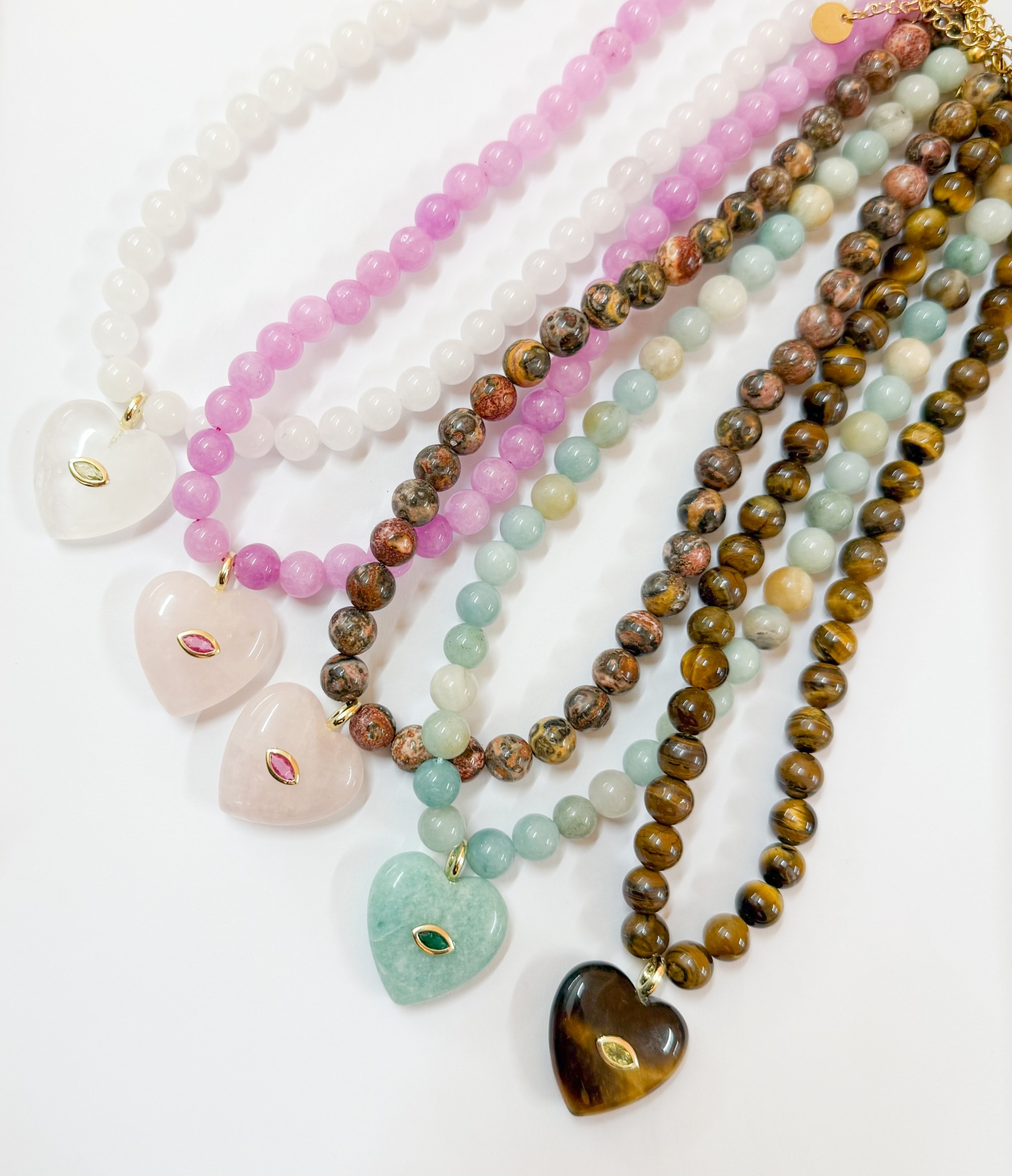 Colar Eternal Heart 18,00 € Desconto de %. Partilhar Colar Branco Rosa Claro Lilás + Rosa Castanho + Rosa Verde Água Castanho Comprar Contactar Material: pedra natural, aço inoxidável, latão com banho e zircónias Comprimento regulável