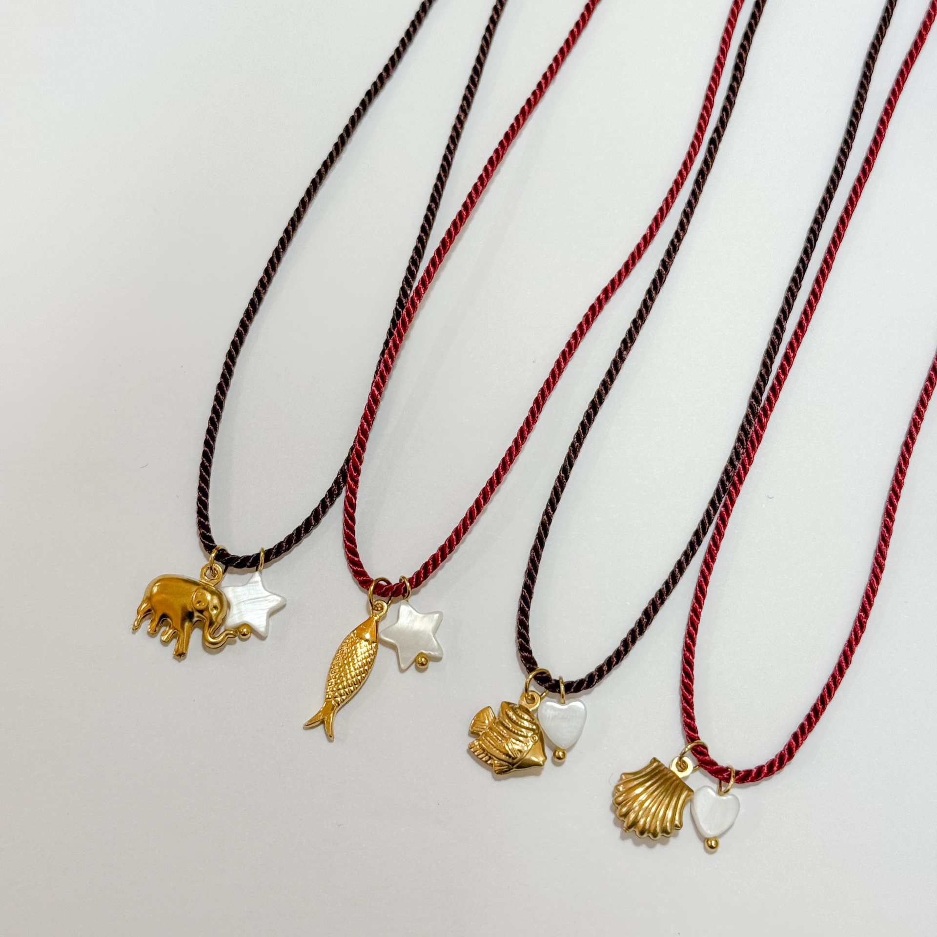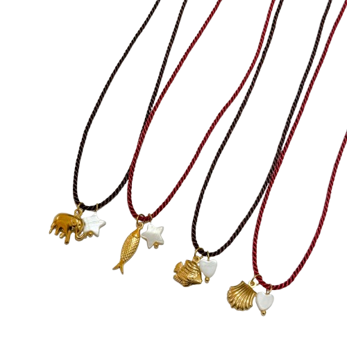 Colar Gold Charm Cord 7,00 € Desconto de %. Partilhar Modelo Castanho Elefante Bordeaux Peixe Longo Castanho Peixe Bordeaux Concha Comprar Contactar Material: nylon, aço inoxidável e madrepérola Comprimento regulável até aos 46cm