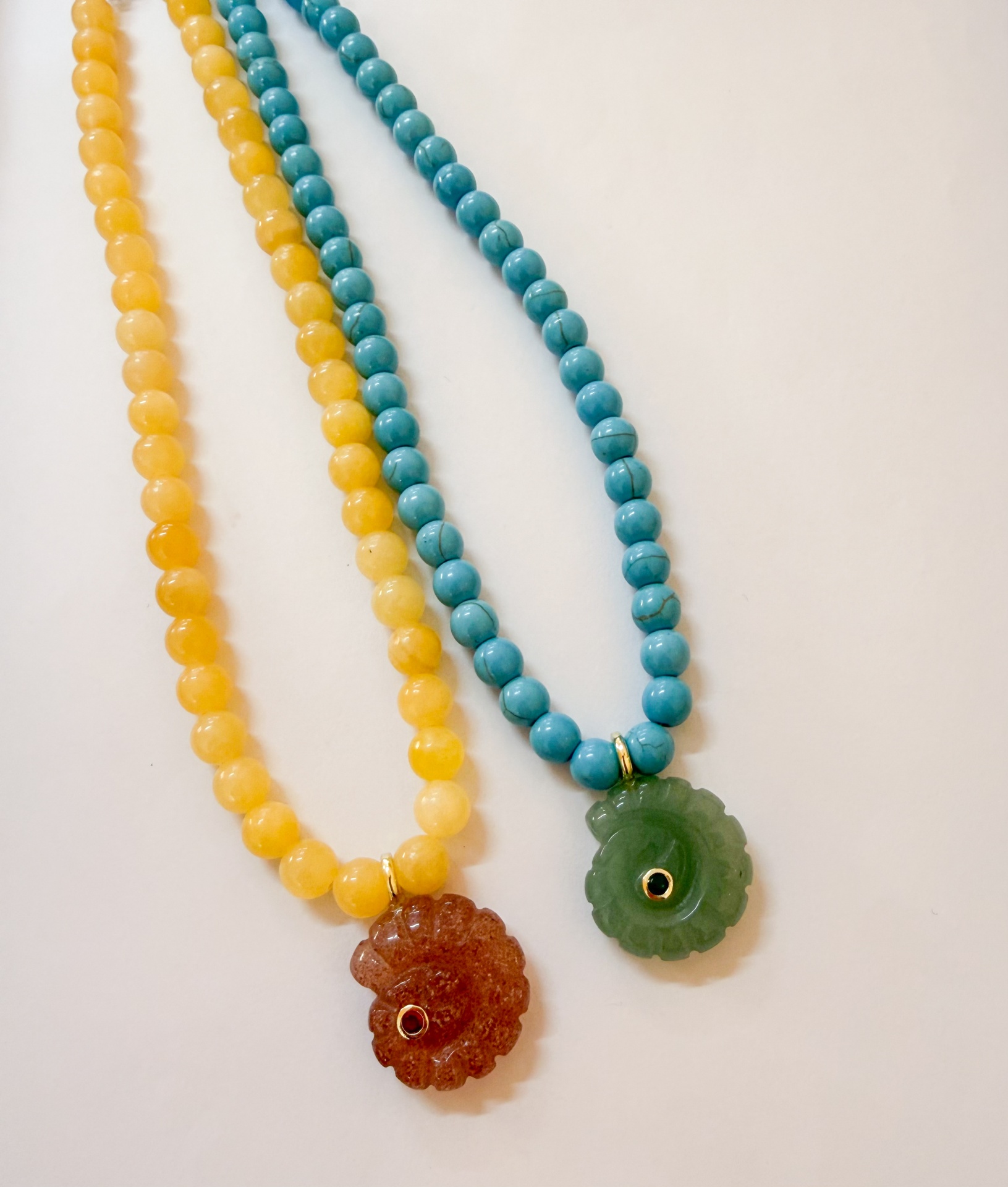 Colar Mystic Shell 18,00 € Desconto de %. Partilhar Colar Amarelo + Salmão Turquesa + Verde Comprar Contactar Material: pedra natural, aço inoxidável, latão com banho e zircónias Comprimento regulável