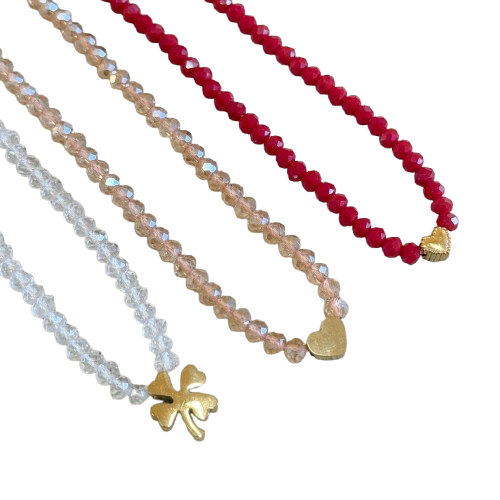 Colar Pedrinhas Detalhe Dourado 9,00 € Desconto de %. Partilhar Modelo Transparente Trevo Champanhe Coração Vermelho Coração Comprar Contactar Material: vidro e aço inoxidável Comprimento de 42cm
