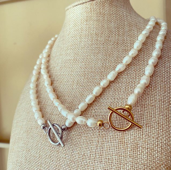 Colar Pérolas Fecho em T 12,00 € Desconto de %. Partilhar Fecho Prateado Dourado Comprar Contactar Material: aço inoxidávle e pérolas de água doce Comprimento de 43cm.