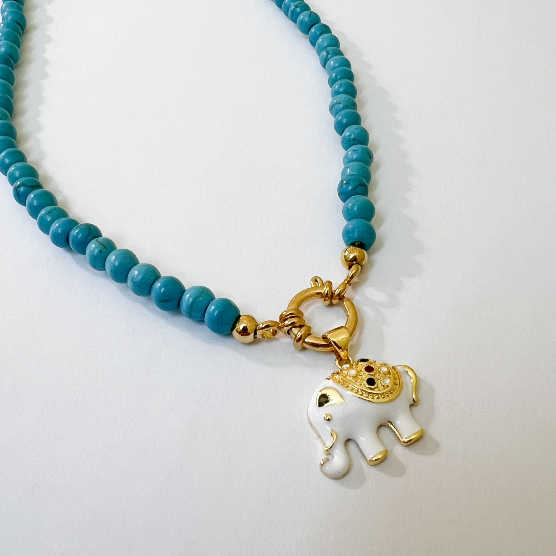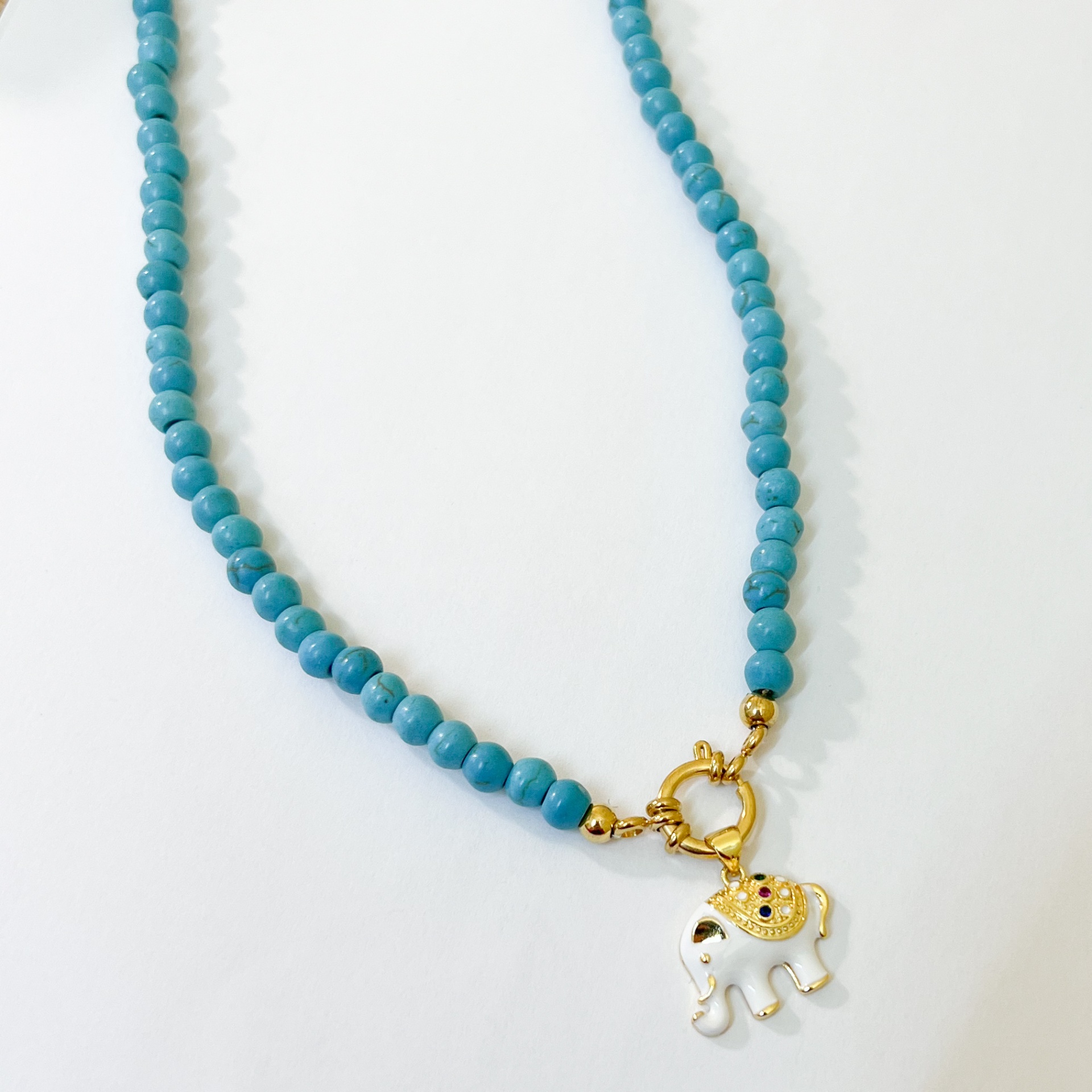 Colar Pedra Elefante 14,00 € Desconto de %. Partilhar Comprar Contactar Material: contas em pedra, fecho em aço, pendente em latão, esmalte e zircónias Comprimento de 43cm