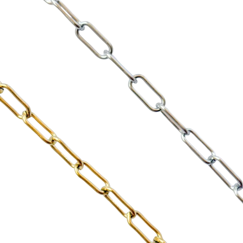 Corrente Elos Longos Larga 10,00 € Desconto de %. Partilhar Cor Prateado Dourado Comprar Contactar Material: aço inoxidável Elos de 16mm x 7mm Valor indicado para 1 metro.