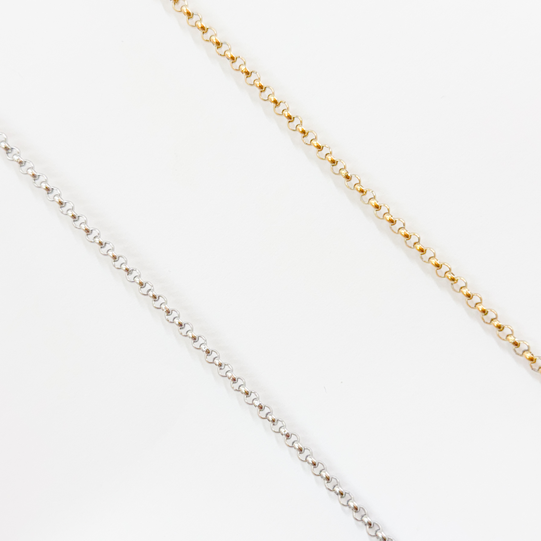 Corrente Elos Redondos 3,00 € Desconto de %. Partilhar Cor Dourado Prateado Espessura 2.5mm 3mm 4mm 6mm 7mm 8mm Comprar Contactar Material: aço inoxidável Elos não soldados Valor indicado para 1 metro