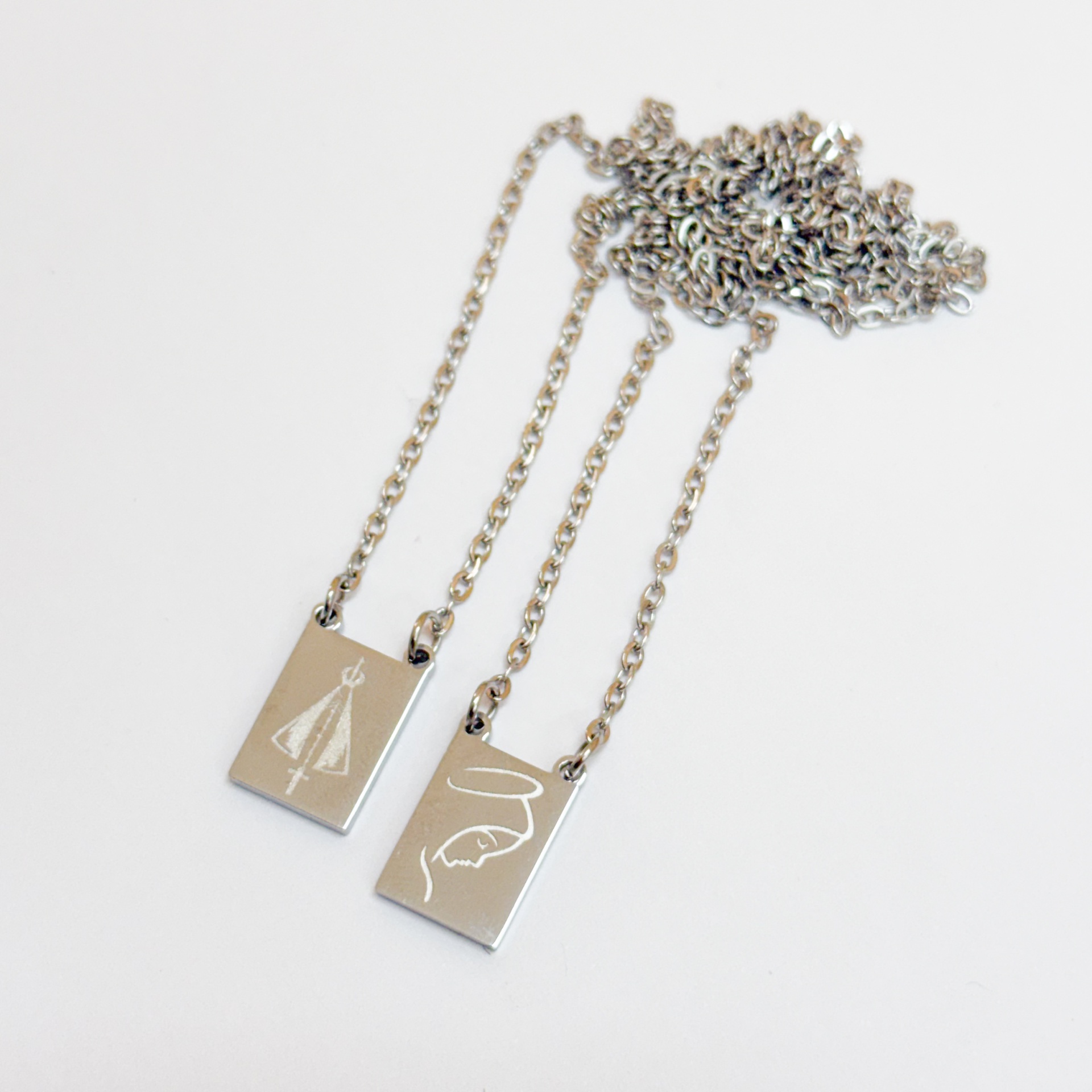 • Colares prateados com pendentes gravados retangulares