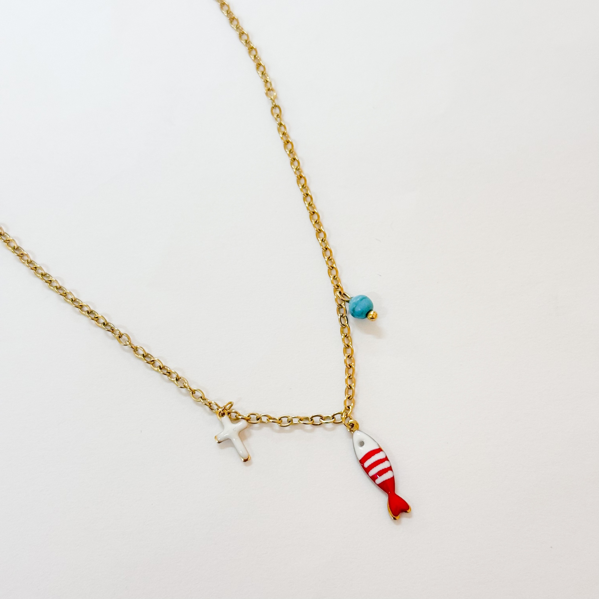 Fio Fish & Cross 8,00 € Desconto de %. Partilhar O produto encontra-se sem stock. Material: aço inoxidável, esmalte e pedra Comprimento regulável