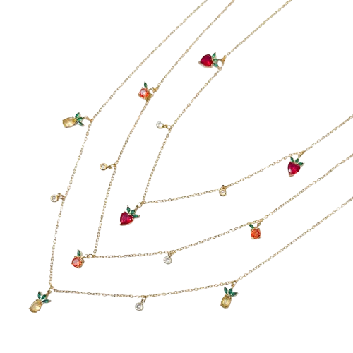 Fio Frutas e Brilhos 10,00 € Desconto de %. Partilhar Frutas Morangos Laranjas Abacaxis Comprar Contactar Material: aço inoxidável e zircónias Comprimento regulável entre os 41cm e os 47cm