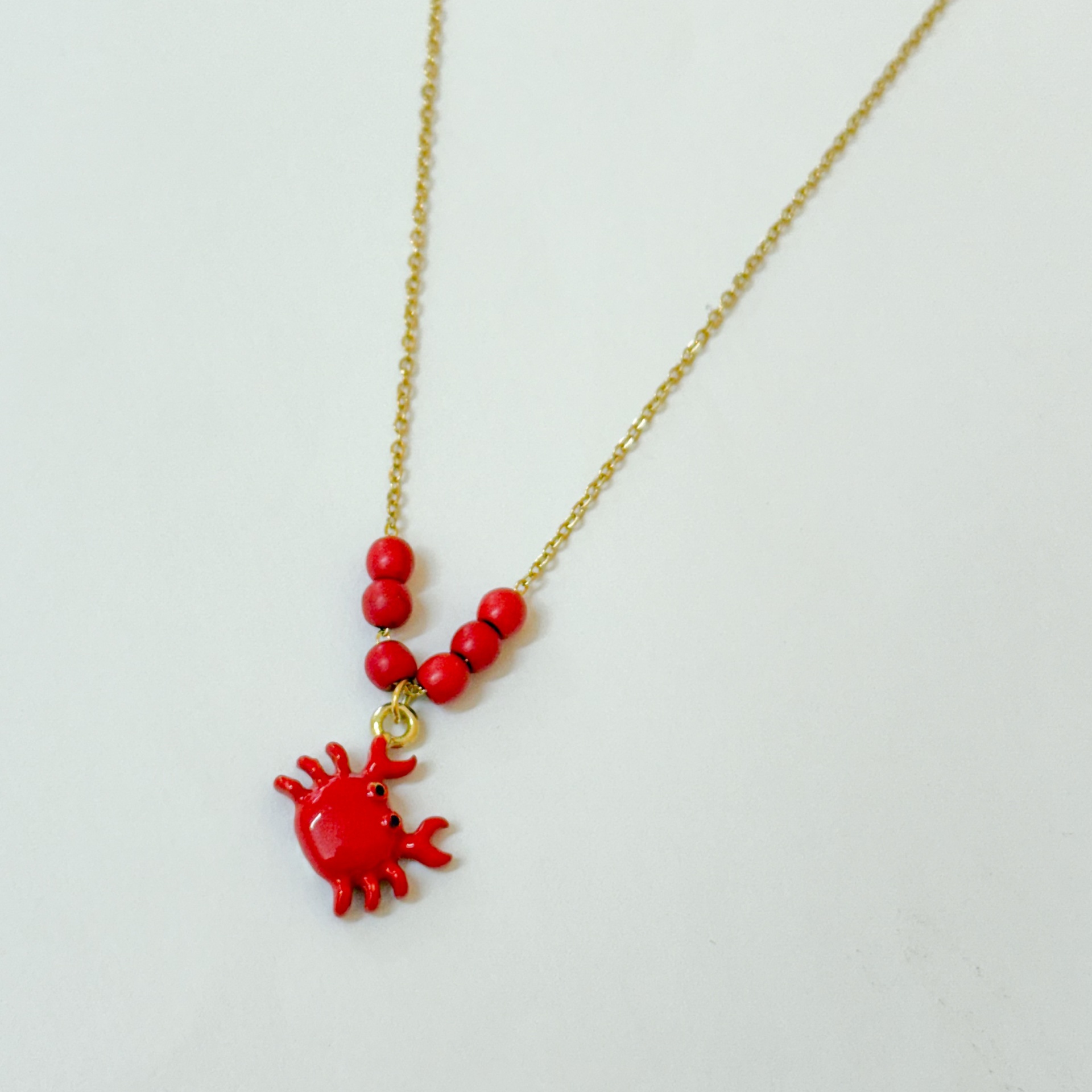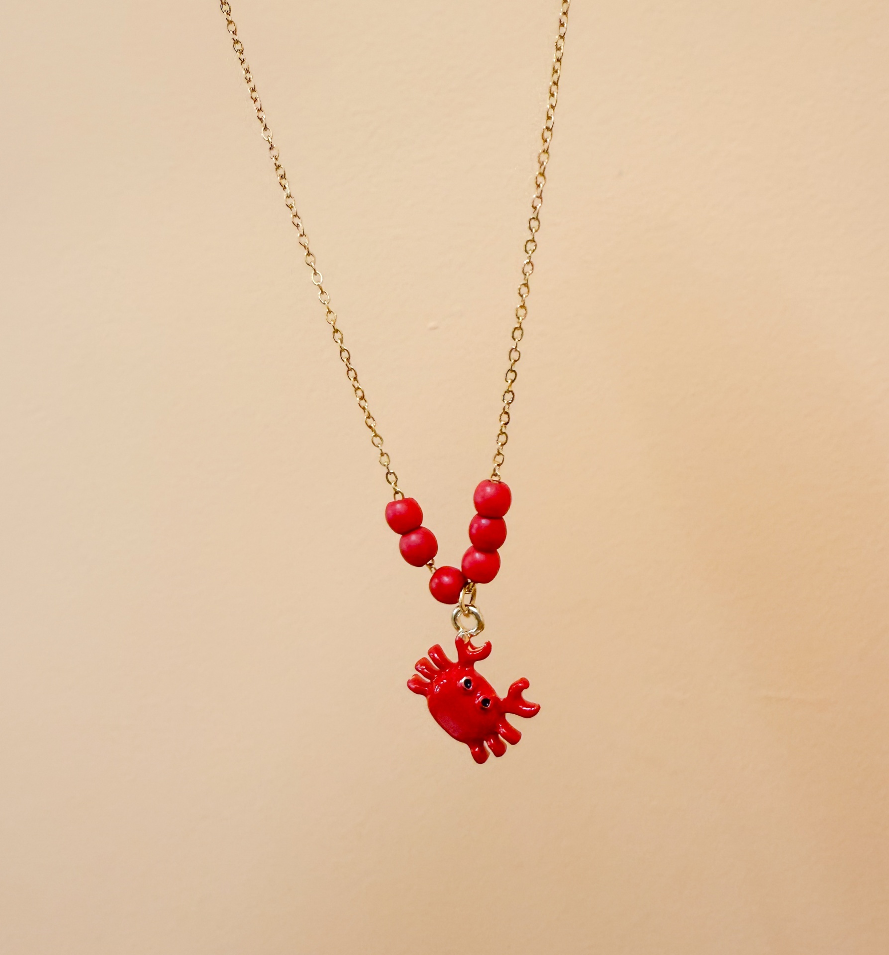 Fio Red Crabby 8,00 € Desconto de %. Partilhar Comprar Contactar Material: aço inoxidável, pedra, latão e esmalte Comprimento regulável entre os 41cm e os 44cm