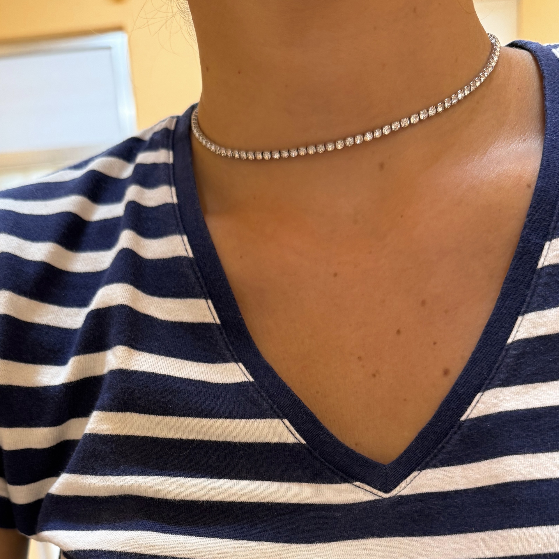 Riviera Gargantilha Zircónias 12,00 € Desconto de %. Partilhar Cor Dourado Prateado Espessura 2mm 4mm Comprar Contactar Material: aço inoxidável e zircónias Comprimento ajustável entre os 35 e os 41cm