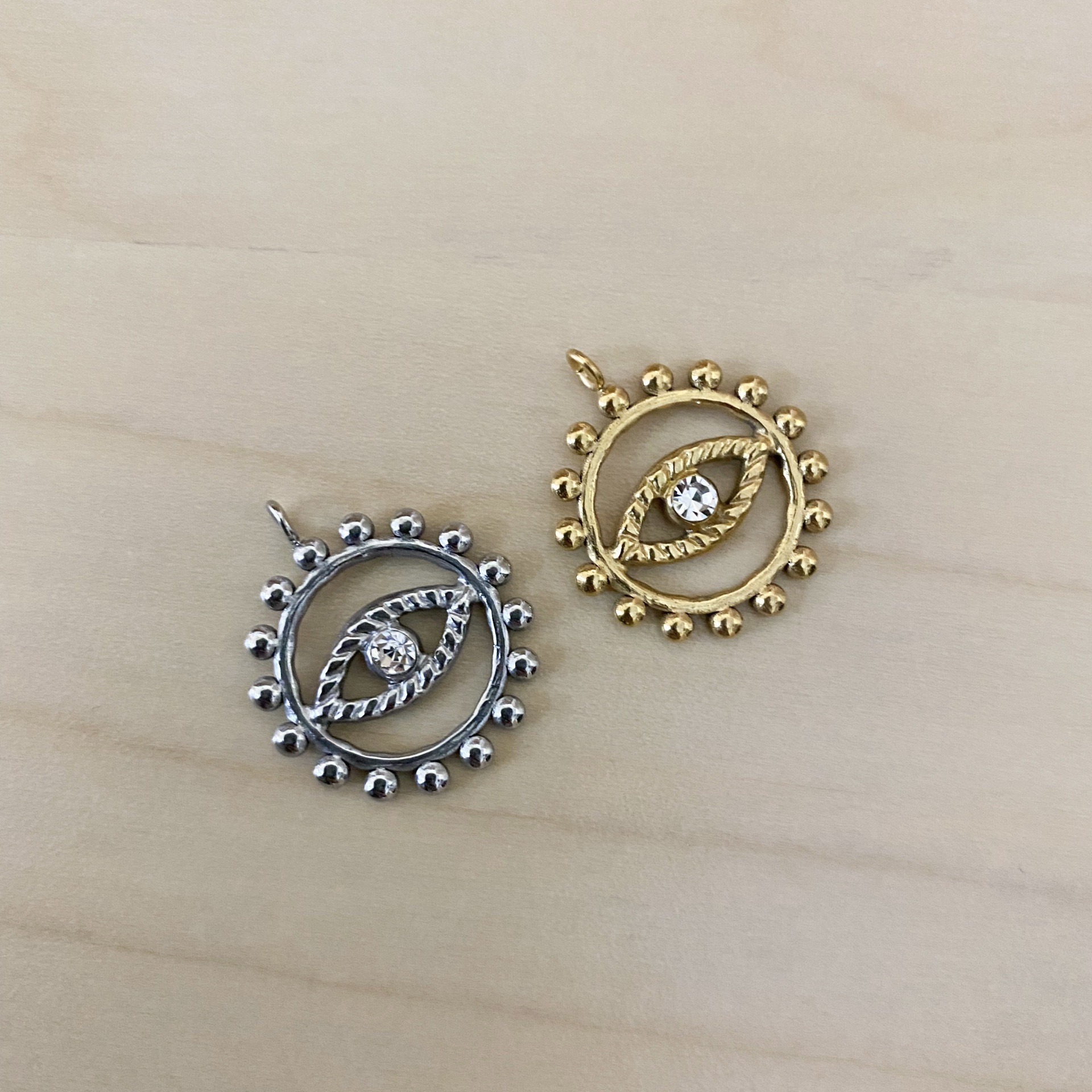 Medalha Olho Contorno Picotado 2,00 € Desconto de %. Partilhar Cor Dourado Prateado Comprar Contactar Material: aço inoxidável Dimensão 24mmx20mm