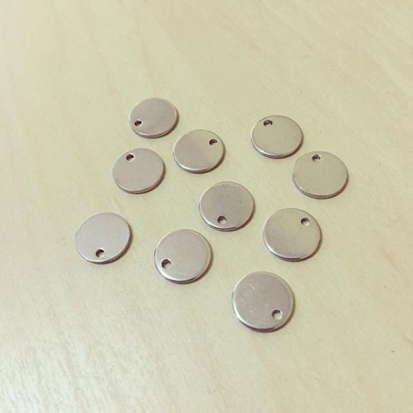 Pack 10 Medalhinhas Aço 10mm 8,00 € Desconto de %. Partilhar Cor Dourado Prateado Comprar Contactar Material: aço inoxidável Dimensão: diâmetro de 10mm O preço refere-se a um pack de 10 unidades.