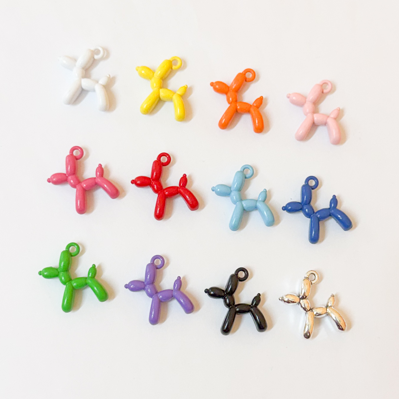 Pendente Balloon Dog 1,50 € Desconto de %. Partilhar Cor Branco Amarelo Laranja Rosa Claro Rosa Vermelho Azul Claro Azulão Verde Roxo Preto Prateado Comprar Contactar Material: zamak esmaltado Dimensão: 19mm x 15mm