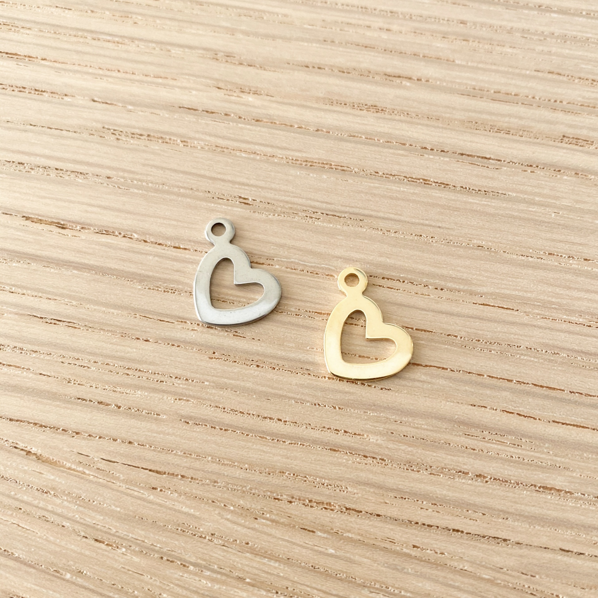 Pendente Coração Inclinado Aço 0,50 € Desconto de %. Partilhar Cor Prateado Dourado Comprar Contactar Material: aço inoxidável Dimensão: 15mm x 10mm.