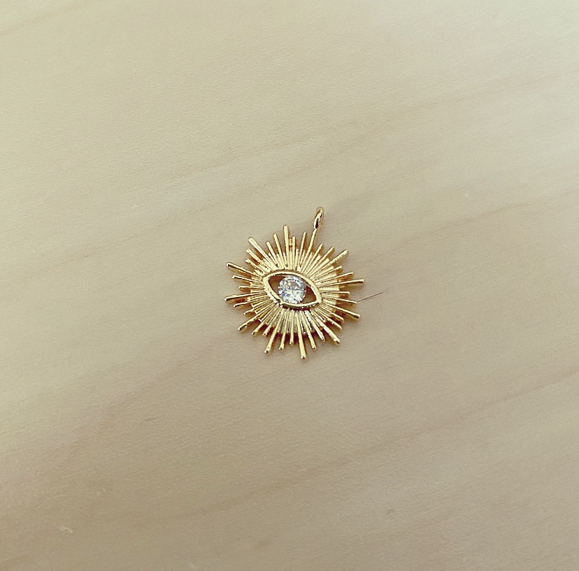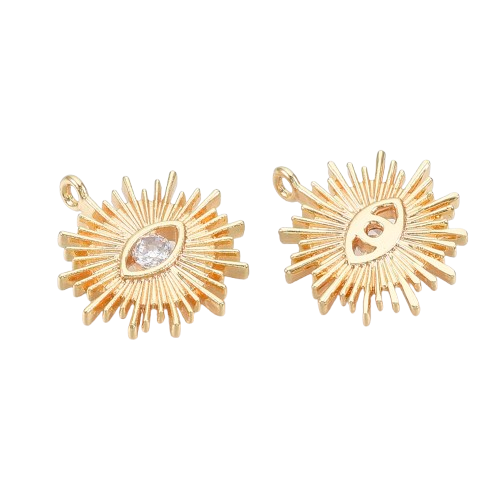 Pendente Olho Sol Zircónia 2,00 € Desconto de %. Partilhar Comprar Contactar Material: latão com banho de ouro e zircónias Dimensão: 17mm x 15mm