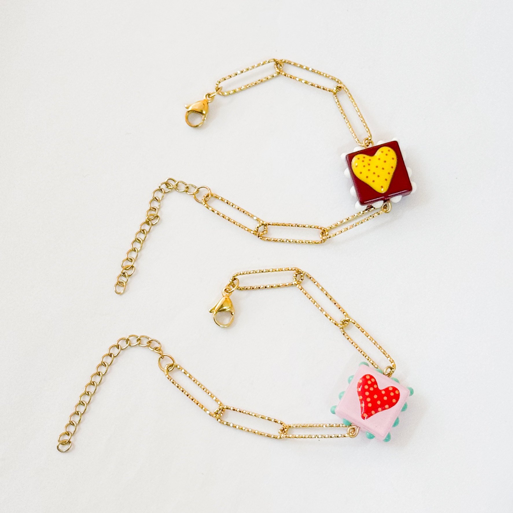Pulseira Coração Doce 9,00 € Desconto de %. Partilhar Cores Bordeaux Amarelo Branco Rosa Vermelho Turquesa Comprar Contactar Material: resina e aço inoxidável Comprimento regulável entre os 15 e os 18cm