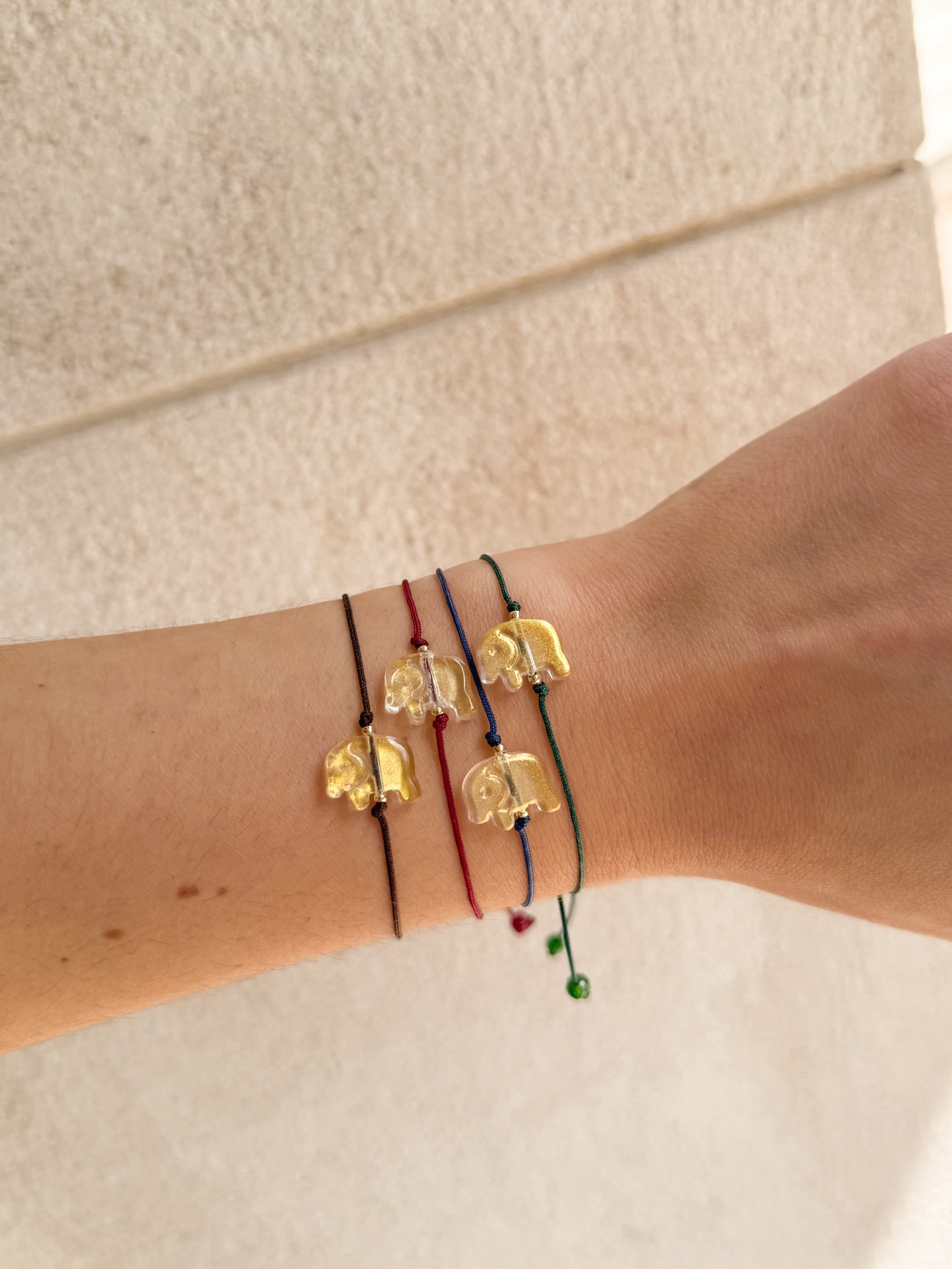Pulseira Elefante Contrast 4,00 € Desconto de %. Partilhar Fio Castanho Bordeaux Marinho Verde Escuro Comprar Contactar Material: nylon, acrílico e aço Tamanho regulável