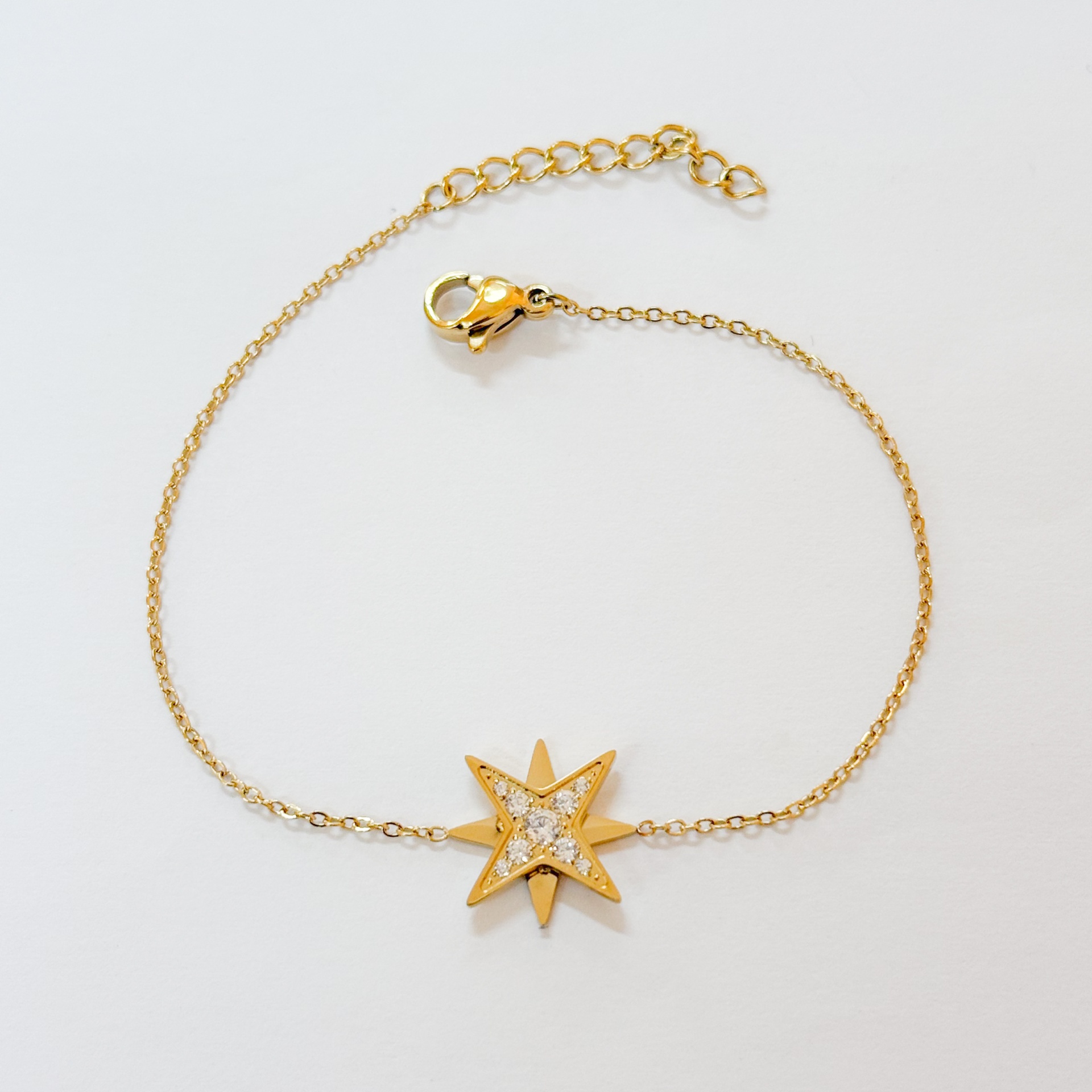 Pulseira Fina Estrela 8,00 € Desconto de %. Partilhar Comprar Contactar Material: aço inoxidável e zircónias Tamanho regulável