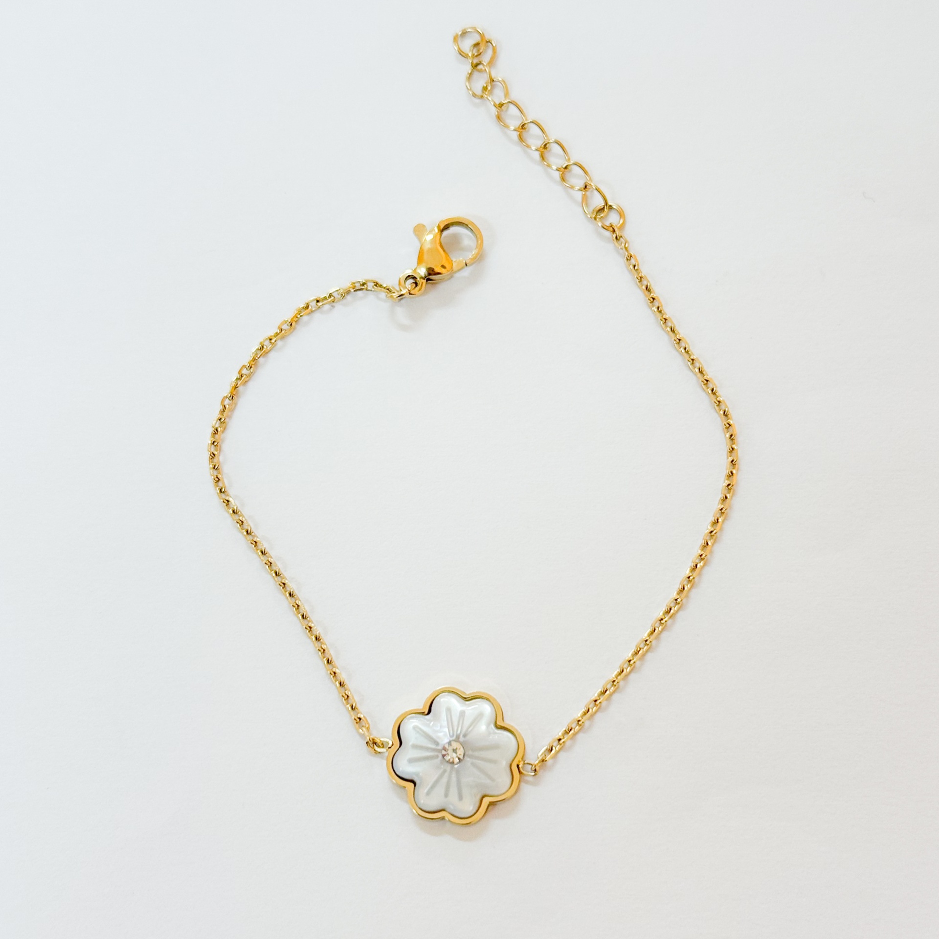 Pulseira Fina Trevo Madrepérola 9,00 € Desconto de %. Partilhar Comprar Contactar Material: aço inoxidável, madrepérola e zircónias Tamanho regulável