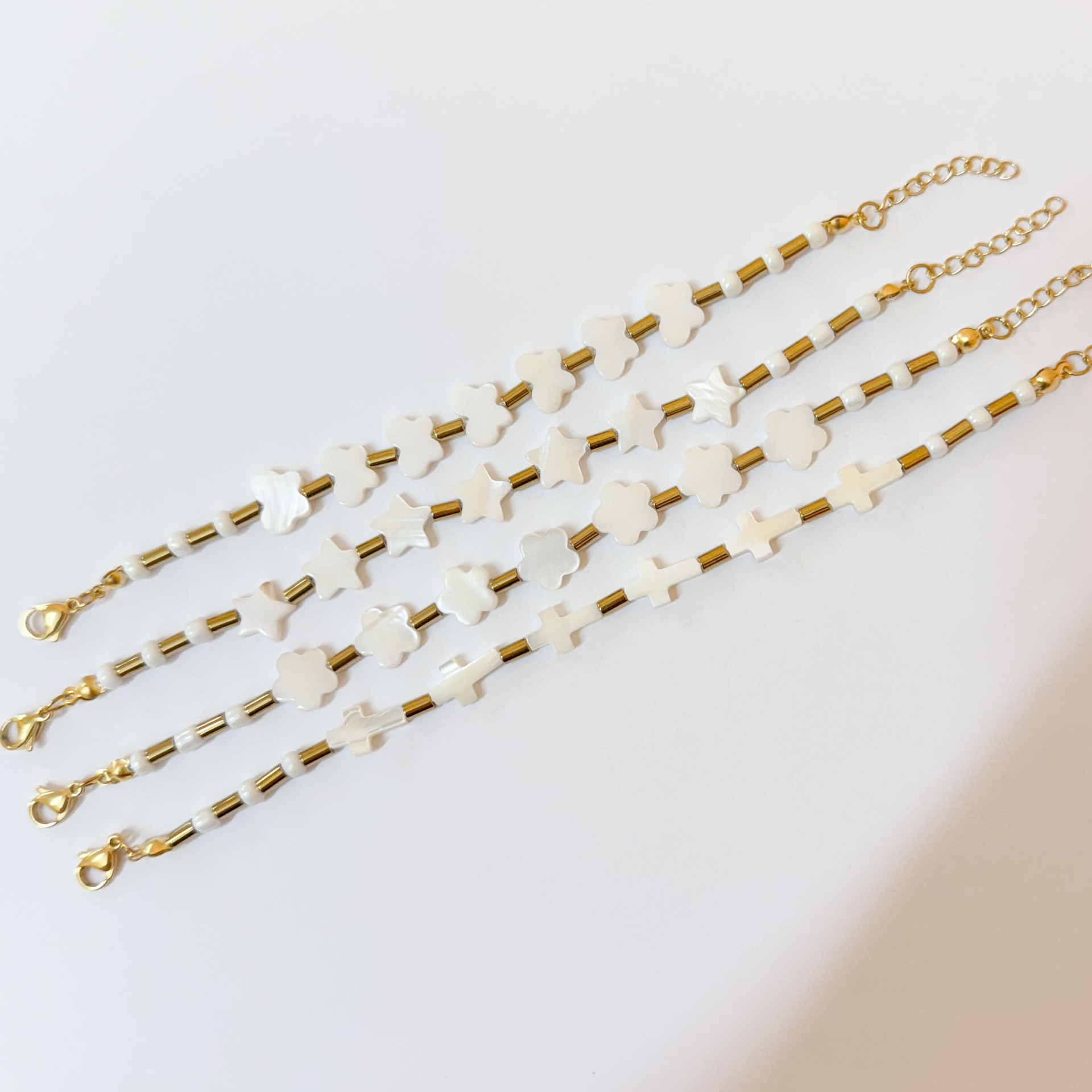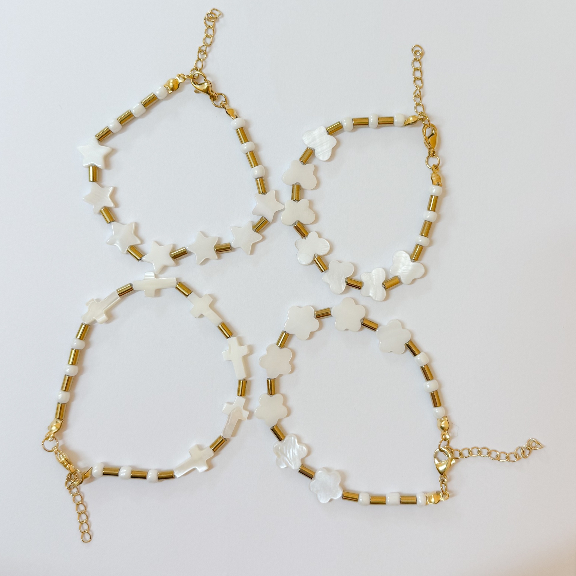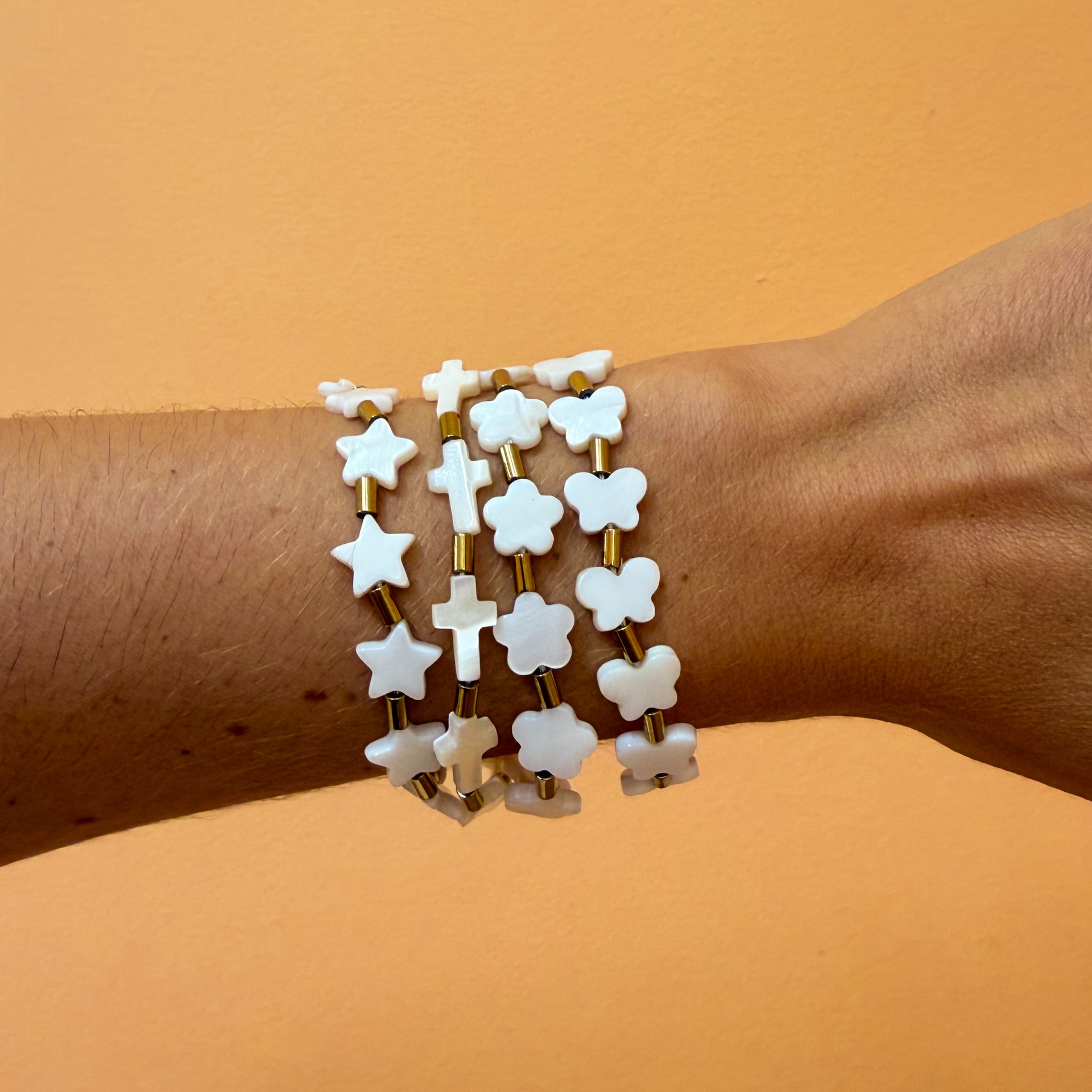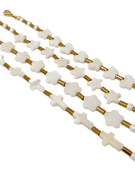 Pulseiras Pearl Shapes 10,00 € Desconto de %. Partilhar Shapes Cruzes Flores Estrelas Borboletas Comprar Contactar Material: hematite, madrepérola e aço inoxidável Tamanho regulável a partir dos 17cm
