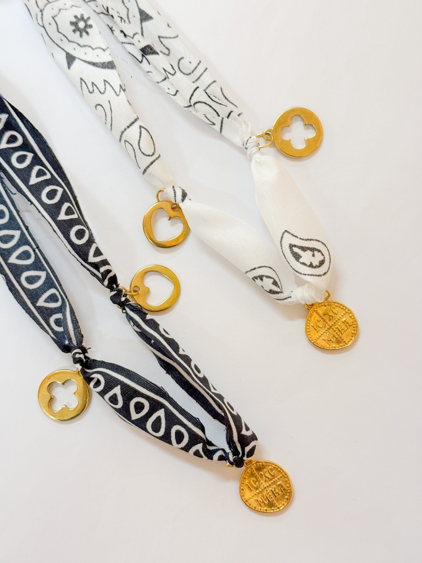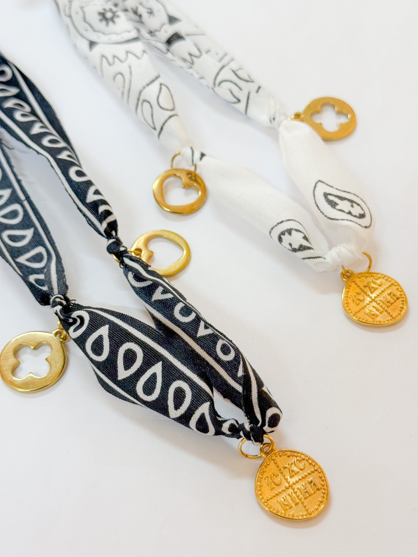 The BANDANA NECKLACE 10,00 € Desconto de %. Partilhar Cor Branco Preto Comprar Contactar Material: detalhes em aço inoxidável Comprimento de 40cm